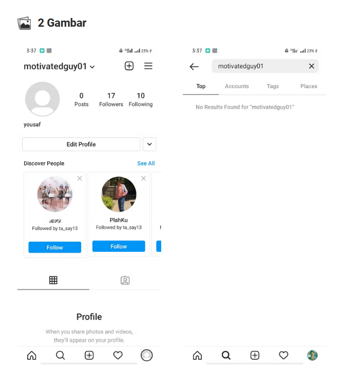 Tapi mungkin saja bahwa orang yang anda curigai mengubah nama username . Jika itu terjadi, Anda tidak akan melihat akun mereka di hasil penelusuran, tetapi bukan berarti Anda telah diblokir.