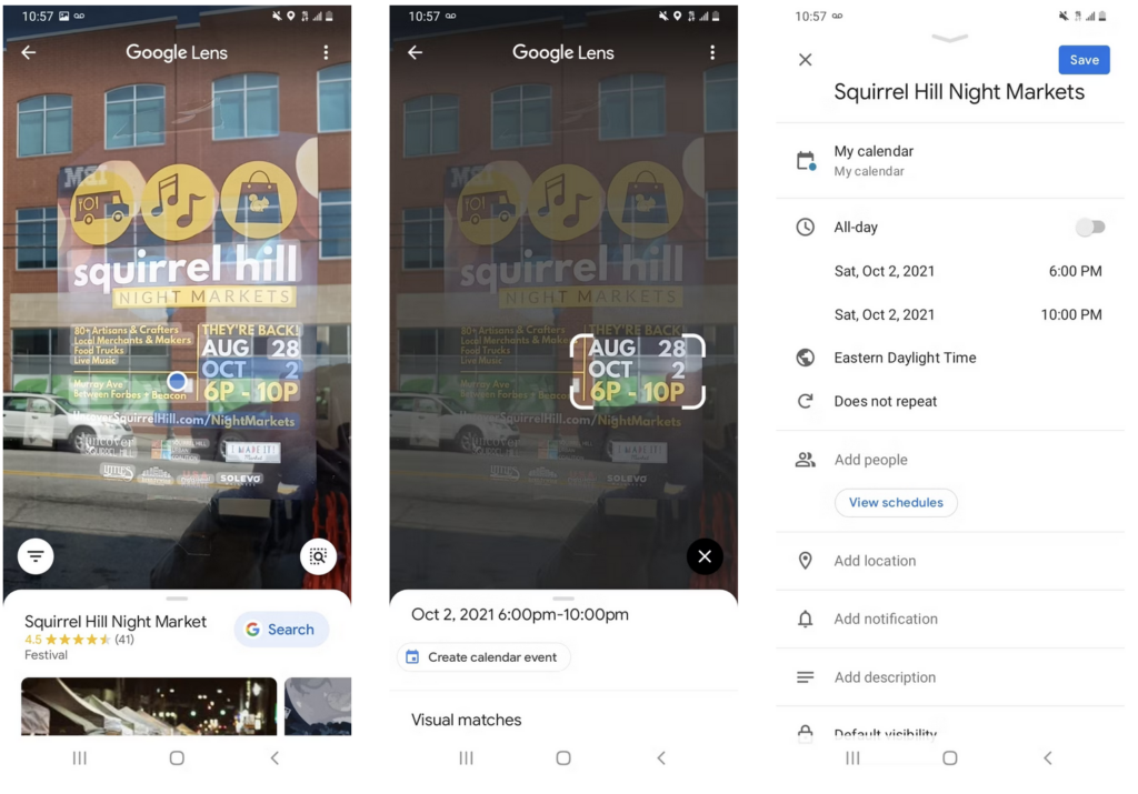Jika Anda ingin menambahkan janji temu baru atau acara yang Anda lihat diiklankan ke kalender Anda, melakukannya semudah mengambil foto dengan Google Lens dan mengikuti petunjuknya.