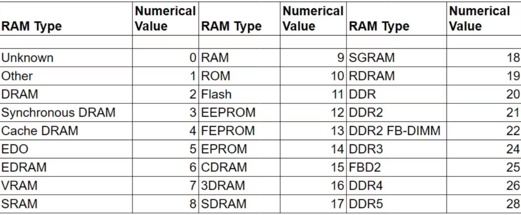 Bandingkan nilai numerik dari MemoryType dengan tabel berikut untuk mengidentifikasi jenis RAM. Misalnya jika nomor kodenya 24 , berarti komputer Anda memiliki RAM DDR3 .