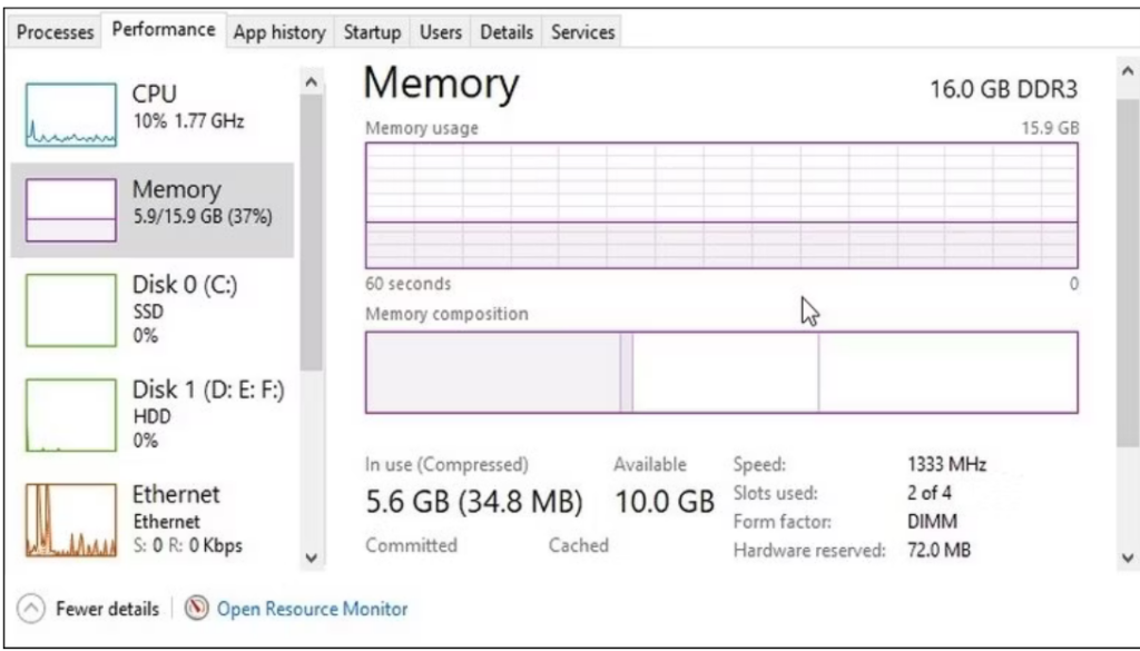 Berikut langkah – langkah untuk memeriksa jenis RAM menggunakan Windows Task Manager :