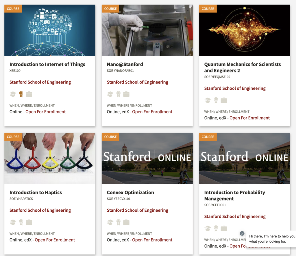 Saat ini banyak universitas terkemuka dunia yang menyelenggarakan kuliah online salah satu nya adalah Standford University, menariknya Standford University menyediakan beberapa perkuliahan gratis yang bisa diakses oleh siapapun dan ada beberapa mata kuliah yang juga menyediakan sertifikat bagi yang telah menyelesaikan perkuliahan sampai akhir.
