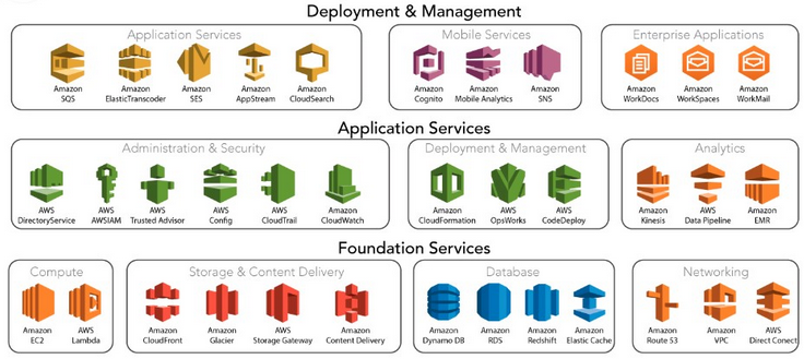 Beberapa layanan yang disediakan oleh AWS antara lain layanan virtual server, penyimpanan data, keamanan jaringan, blockchain, machine learning, atau artificial intelligence, platform pengembangan robot dan masih banyak layanan lainnya.